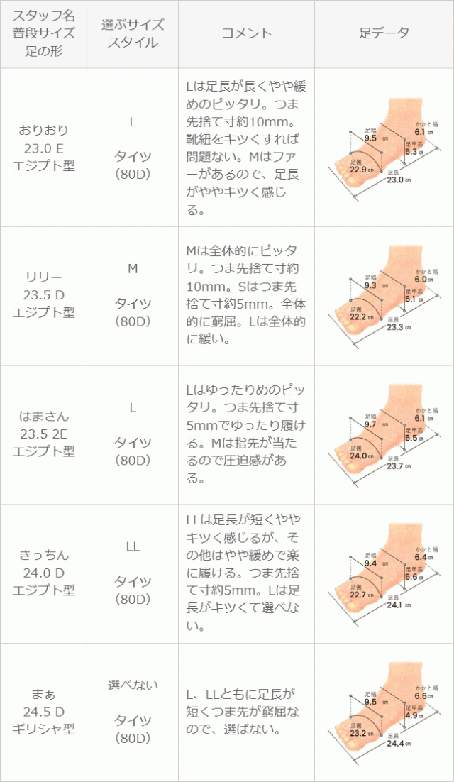 ※足の形には個人差があります。スタッフ試着感想は参考程度にお考え下さい。