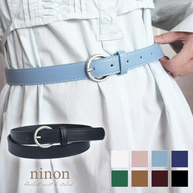 【メンズ・レディース兼用/大人かわいいサークル型シルバーバックルPUレザーベルト】