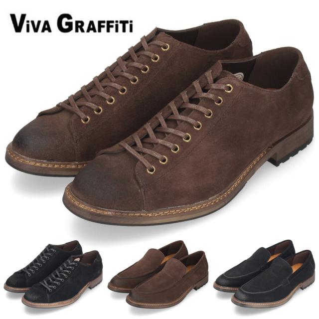 メンズ カジュアルシューズ 本革 靴 革 スエード ブラック 黒 ダークブラウン スリッポン レースアップシューズ 紐靴 レザー ビバグラフィティ 2611 2612