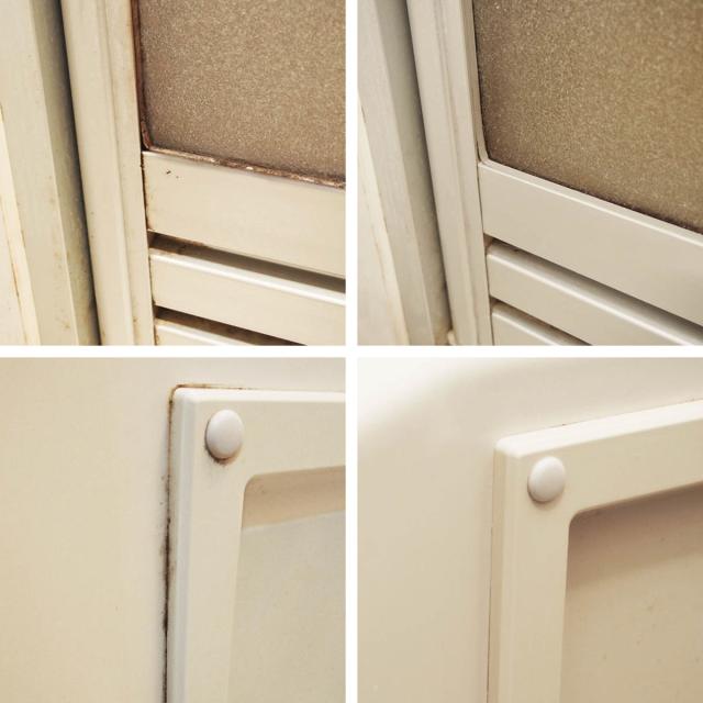 ●タイル目地、シャワーカーテン、シリコンコーキング、ゴムパッキン等小物類に発生したカビを除去できます。