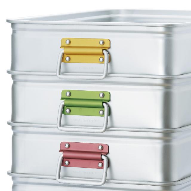 軽くて扱いやすいアルミ製ボックスです。食材の一時置きや保管、調理の下ごしらえ、具材の仕分けなど様々な用途で活躍します。アルミは熱伝導性が良く、冷蔵庫に食材をそのまま入れて素早く冷やすことができます。4色のカラーで用途別に分けて便利にお使いいただけます。
