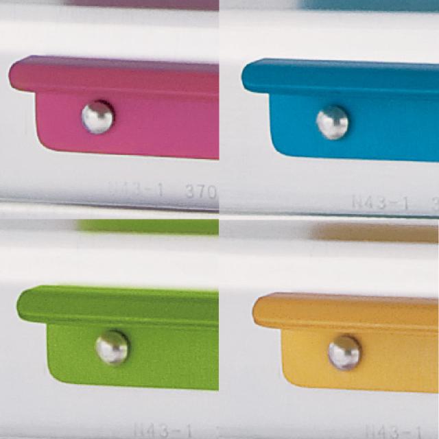 ●ポップなカラーリングの4色に色分けされた取っ手は中に入れた物を仕分けるのにも便利に役立ちます。