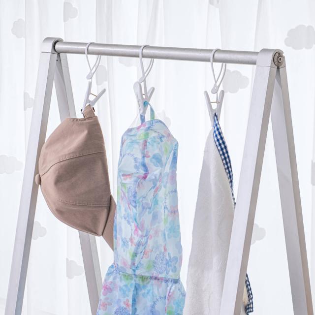 物干し竿に固定しやすいひもが付いたピンチです。洗濯物はもちろん、帽子や手袋などのクローゼット収納、キッチン周りの小物干し、お菓子の袋止めなどいろいろな使い方ができ、便利です。
