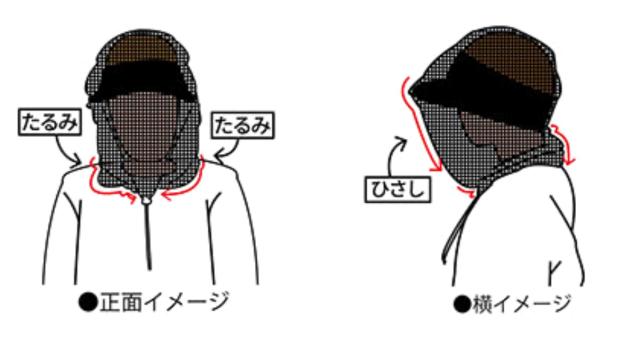 ●キャップやバイザーを着用するとひさしができ、生地が直接肌に触れません。