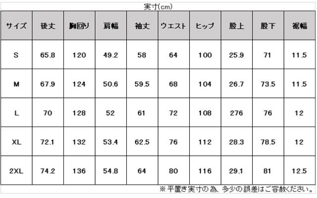 サイズ:身長 / 胸囲 / 胴囲
