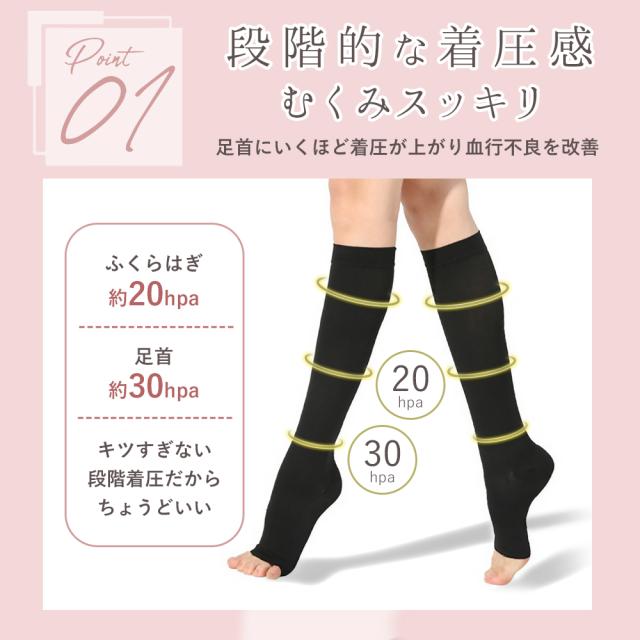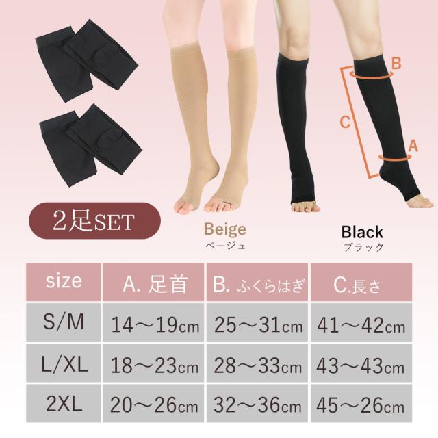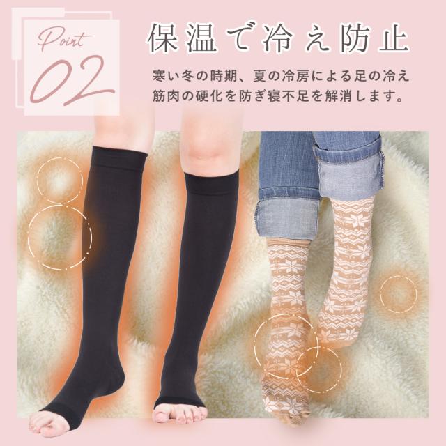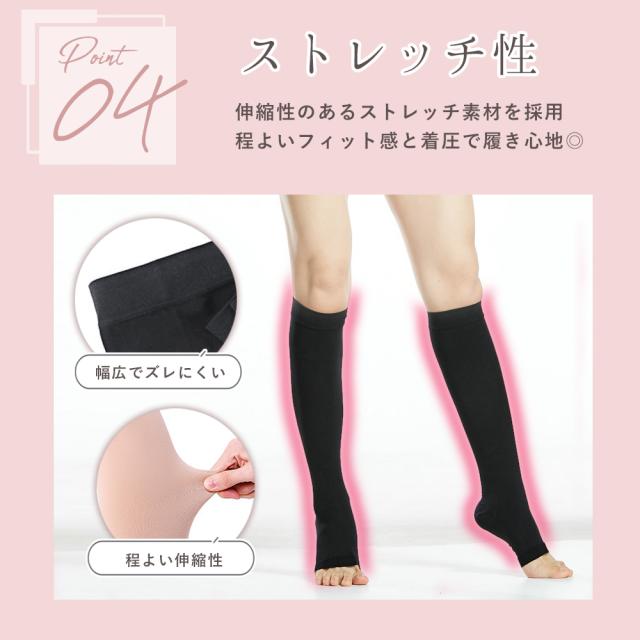 むくみ取り着圧ソックス 2足セット 弾性ストッキング むくみ解消 美脚 高ストレッチ 血行不良改善 夜用 つま先なし 保温 女性用 ふくらはぎ むくみ 寝る時 足の疲労解消