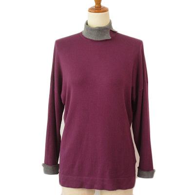 【中古】ドゥクラッセ DoCLASSE 配色ニット スリットタートル S 紫 パープル