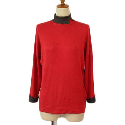 【中古】ドゥクラッセ DoCLASSE 配色ニット スリットタートル S 赤 レッド レディース