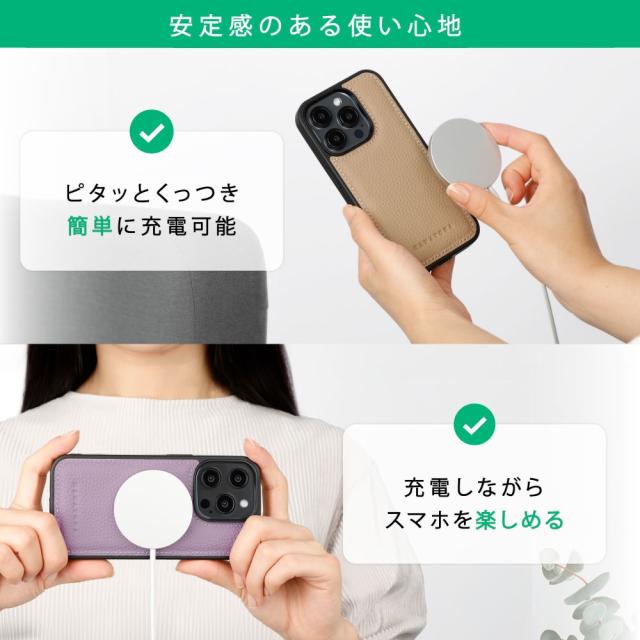 | 2024年SS新作“シンプル”を追求したiPhoneケース。 シンプルな見た目ながら、シュリンクレザー本来の素材の良さが楽しめる、トレンドに左右されないデザインとなっております。 年齢性別問わずお使いいただける上質なレザーは、洗練された手元を演出します。 背面に立体感を出すことで、従来品には無い高級感を引き立たせました。 また、芯材を入れてケースの高さを出す事で、背面カメラ部分の接地を抑える設計となっております。 当商品には、"サチクラレザー"を使用しています。一際目を惹く美しい発色のパープルカラーからスタンダードカラーまで7色展開。 きっと貴方のお気に入りのカラーが見つかります。 What's SACHKURA Leather? 老舗タンナー(皮革業者)に特注してムラなく美しく染め上げた、当ブランド限定のシュリンクレザー。 サチクラとは、日本を象徴するイメージフラワーである[桜]と、[幸]を組み合わせたトレードマークです。※商標登録済 手に取った方が幸せになるための、日本で企画したアイテムを生み出し続ける事を命題として、厳選した商品にのみ使用しております。 ※既存のHANATORA定番商品とは異なる染料バランスで染め上げております。既存商品と同一のカラー名でも色味が異なります事をご了承くださいませ。 ■高級本革 革表面のシボの凹凸から生み出される高級感漂う見た目は、上質さも兼ねた存在感があります。 革の中でも経年変化が弱いシュリンクレザーは、美しい発色を長くお楽しみいただけます。 毎日欠かさず持ち歩くスマートフォンだからこそ、本物のこだわりを。 ■ケース部分にストラップホールを装備 従来品でご要望の多かったストラップホールをケース側面に装備しております。 付属のハンドストラップやお持ちのキーホルダーをつけてアレンジも可能です。 |