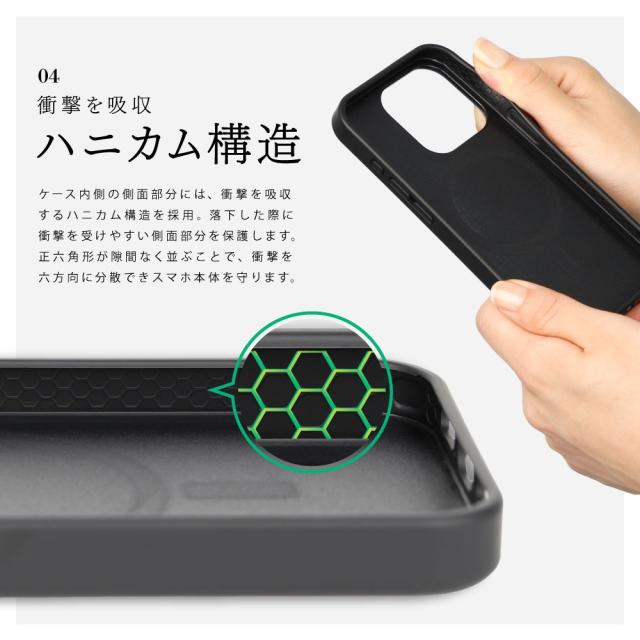 | ・選ぶのが楽しくなる、彩り豊かな色展開 ご要望の多かったくすみカラーをカラーバリエーションに追加。 ベーシックな定番色から本革では珍しい個性派色まで、豊富なカラーバリエーションを揃えました。お好みやお使いのシーンに合わせてお選びくださいませ。 ・耐衝撃性に優れたTPUとABSのハイブリッドケース せっかくの上質な本革、ありふれたPCケースや耐久性の低いソフトケースでは、素材のよさを生かすことができません。 端末を固定するケースには、高品質のTPUケースとABS樹脂を掛け合わせたハイブリッド素材。 ゴムのような柔軟性と、軽量で耐熱性に優れた高耐久のフレームでiPhoneを衝撃から守り、マットな質感でジャケットタイプのスマホカバーによく見られるチープ感を払拭しました。 |