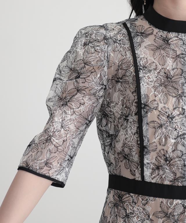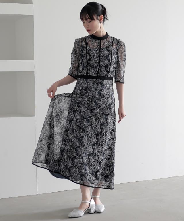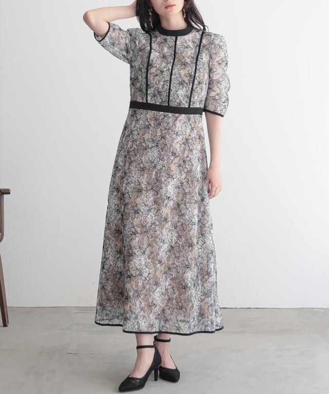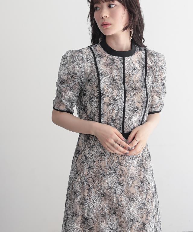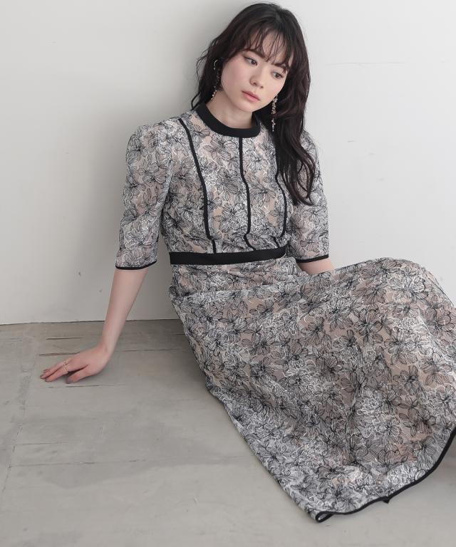 パーティドレス ワンピース レディース 結婚式 パーティー オケージョン ドレス 裏地配色パイピング使い総 レース | 有〔Callarus〕 S/M/L ニッセン nissen