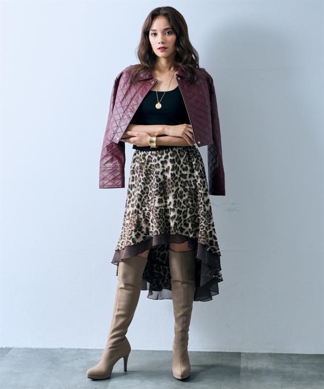 アニマル柄イレギュラーヘムレイヤードスカート【ERES BELLA】