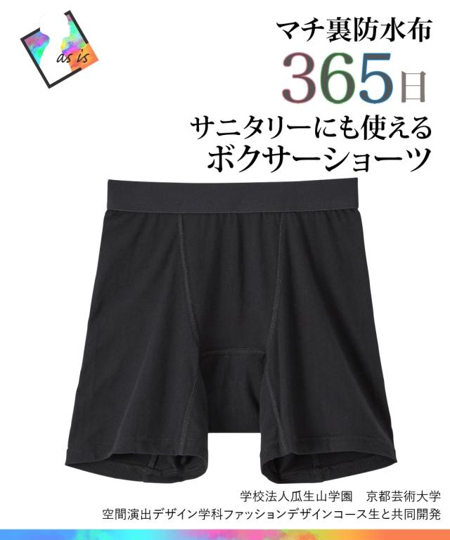 【FTM】【365日使える】綿混ストレッチFTMボクサーサニタリーショーツ巷にあるサニタリーショーツはほとんどかわいいデザインやレース付きそんなことありませんかもっとシンプルですっきりしたデザインがあってもいいのではすべてのお客様に喜んでいただきたい。そんな思いでつくられた【asis】の【365日使える】ボクサーサニタリーショーツ表生地は綿95%でやさしい肌ざわりマチ部分はナプキンを挟み込める仕様に肌にあたる側は綿100%素材だからボクサーショーツとしてもはいていただけます〜POINT〜・着心地快適身生地は綿混素材で適度なストレッチ感があり優しい肌ざわり。・サニタリーにもショーツにもマチ部分の仕様によりサニタリーにもショーツにも365日、年中着用していただける便利なサニタリーショーツです。・パターンにもこだわりましたメンズの商品に長年携わっていたパタンナー(型紙制作者)に雰囲気を壊さず着用感よく仕上げてもらいました。・学生たちと一緒に取り組みました学校法人瓜生山学園 京都芸術大学空間演出デザイン学科ファッションデザインコース生と様々な視点で検討し共同開発しました。沢山の時間をかけて研究開発いたしました。今まで