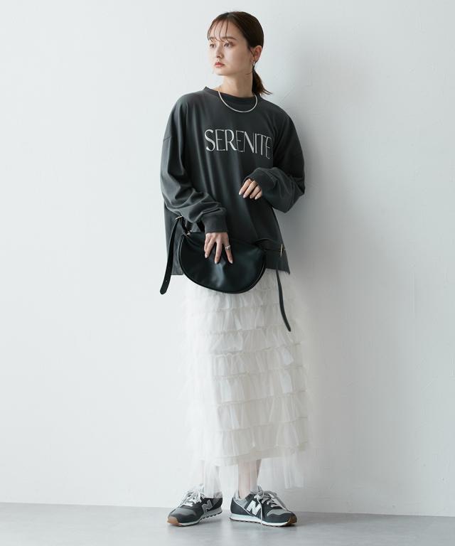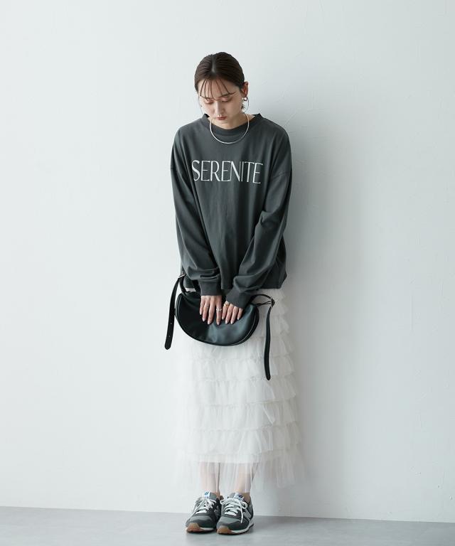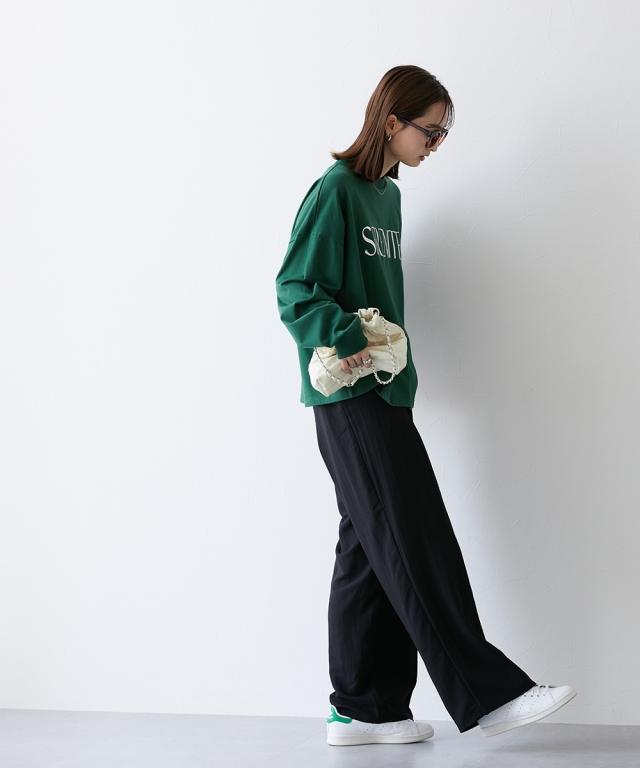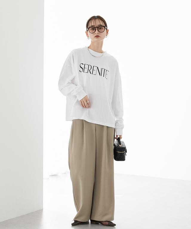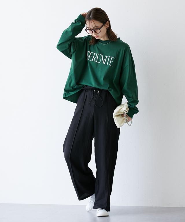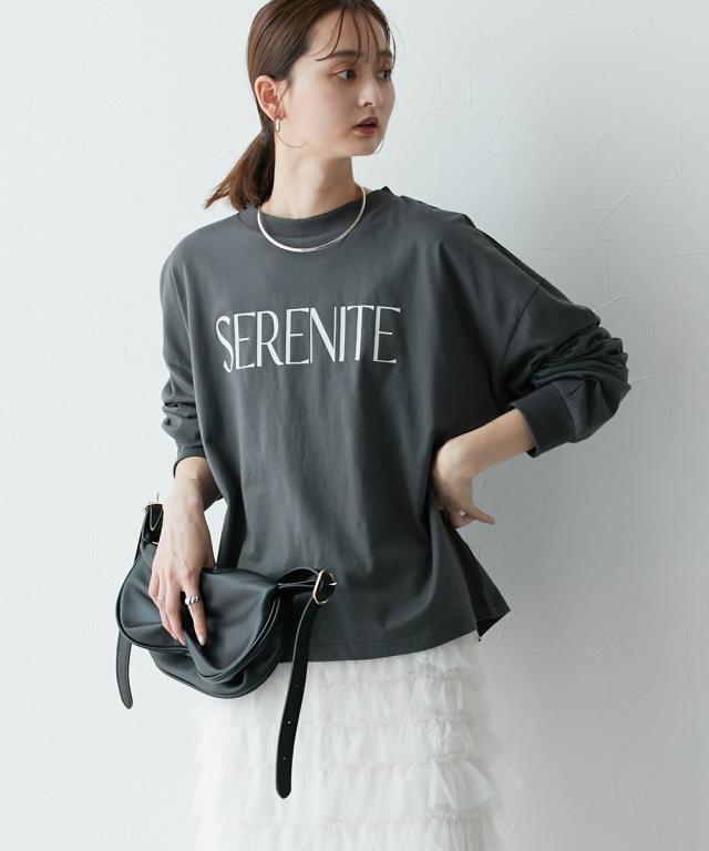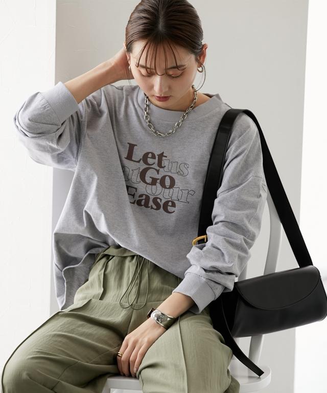 着まわし力抜群 ゆったりシルエット長袖ロゴTシャツ ■デザイン ・ゆったりとしたシルエットで体型カバーも叶う長袖Tシャツ ・ロゴのデザインがキレイめ,シンプルロゴで、インナーにも着回し力抜群です。選べる2種類のロゴでのご提案。 ・展開色も秋冬を意識したカラーで展開しています ・袖もルーズなデザインで、プッシュアップして着こなして頂ければオシャレ度UP ■素材 本体は綿100%のカットソー素材です(リブ部分は混率が異なります) ■おすすめのスタイリング ゆったりとしたサイズ感ですが、ボトムにインしての着こなしも可能。もちろんアウトでの着用も シルエットがゆるっとかわいいので、アウトでの着用もおすすめです これからの季節はベストのインナーやジャケットのインナーにも大活躍間違いなし。 【Be praised】ーーー明日ちょっと褒められる服ーーー 大人トレンドを意識したこだわりのアイテムと着こなしでアナタの毎日に輝きを。 ただシンプルできれいなだけじゃ物足りない。 カジュアルすぎず、スタイリッシュで大人の品性を感じる着こなしに。 そんな、こなれたオシャレを楽しむ女性に寄り添う、 新鮮なリアルクローズをご提案します。