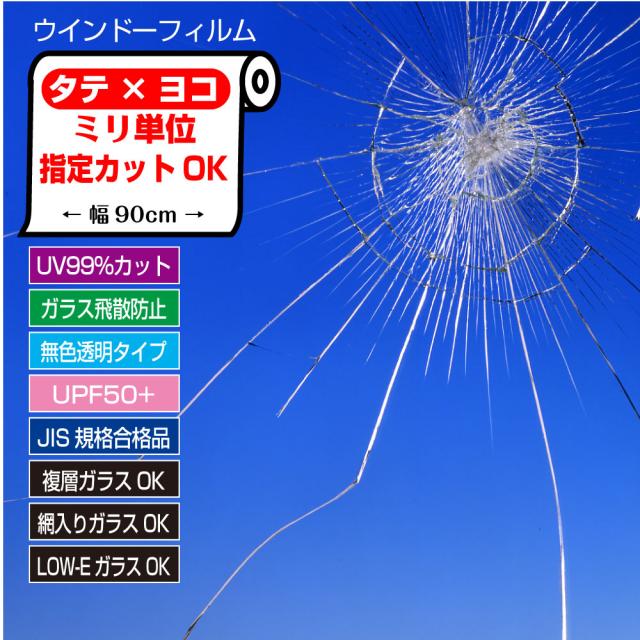 HGS10 特注 ぴったりカット ミリ単位オーダーカット 台風・防災対策 ガラス飛散防止フィルム UV99%カット クリアタイプ 厚手100ミクロン JIS規格合格品 日本製 7営業日以内に出荷