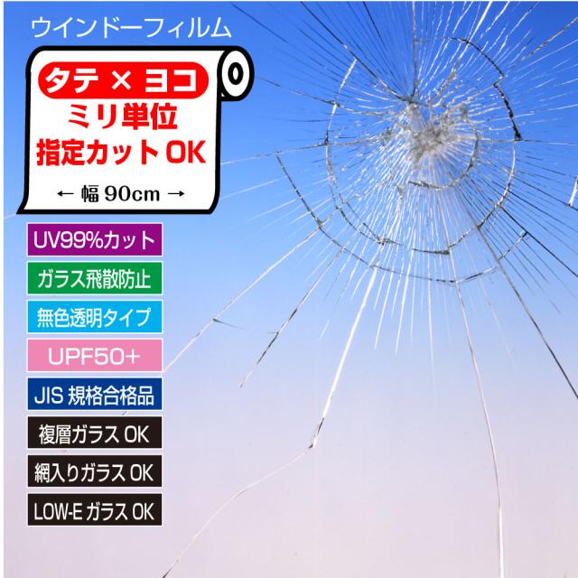 HGS05 特注 ぴったりカット ミリ単位オーダーカット ガラス飛散防止フィルム UV99%カット クリアタイプ JIS規格合格品 日本製 7営業日以内に出荷