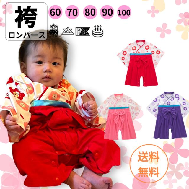 袴 ロンパース はかまカーバーオール ベビー キッズ ベビー服 子供服 女の子 男の子 ひなまつり ひな祭り 着物 和服 お食い初め 初節句 七五三 百日祝い 記念日 誕生日 春夏秋冬 60 70 80 90 100 フォーマル