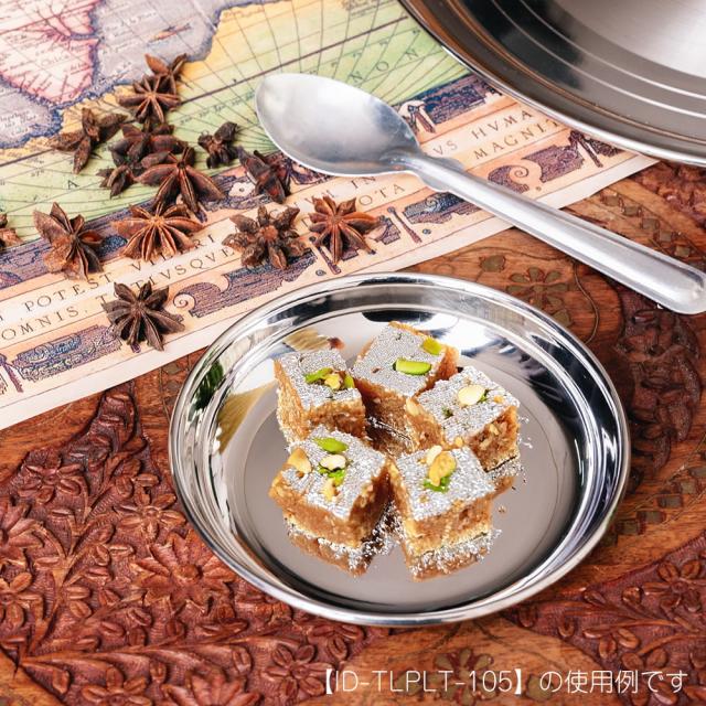 お菓子やサイドディッシュを載せるのに便利な薄めのハルワプレートです。ハルワはもちろんのこと、ミタイやラドゥ、バルフィ、ナッツ類など、インドの伝統的なスイーツを盛り付けるのに最適です。プレートの浅めで広がりのあるデザインは、スイーツの美しさを引き立ててくれます。もちろんお菓子やデザートだけでなく、チャトニやサブジ、副菜、サイドディッシュ用として、アイデア次第で様々な用途にご使用いただけます。