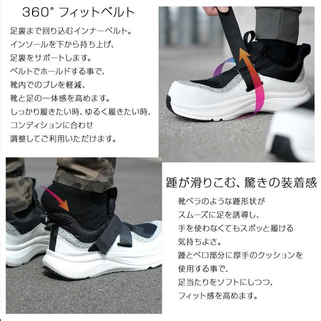 手を使わずに履ける ベルト 父の日 プレゼント 作業靴 ブラック ホワイト 軽い 敬老の日 ギフト 倉庫作業 セーフティシューズ 仕事靴