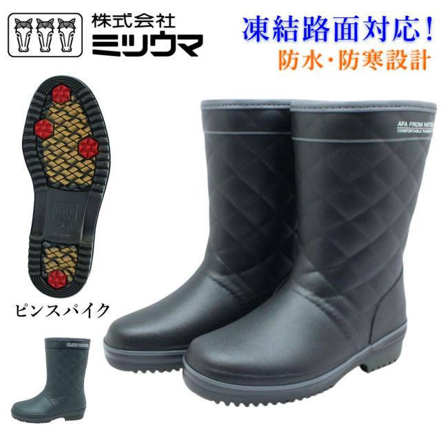 ミツウマ レディース スパイク付き 長靴 エーファ No.4110 MUNS レインブーツ ハーフブーツ 軽量 防寒 防水 防滑 雨 雪