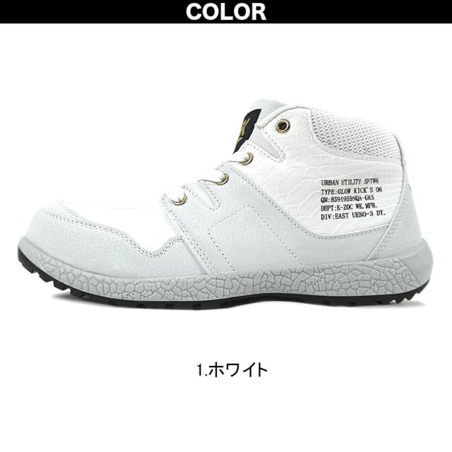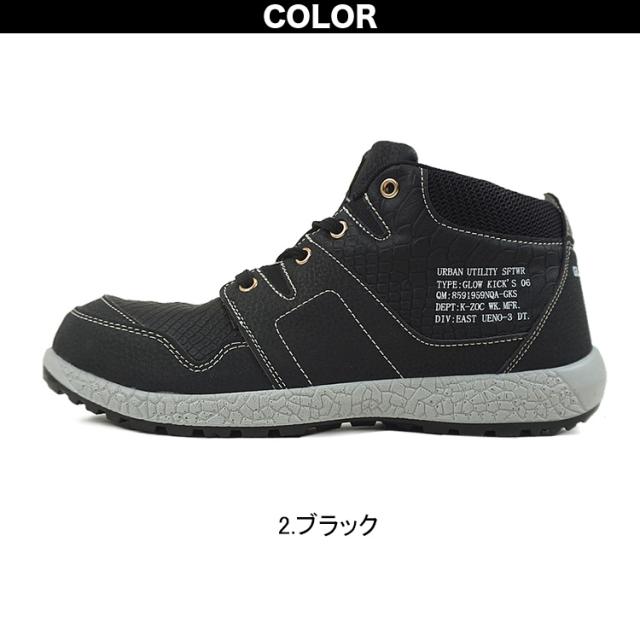 ケイゾック K-ZOC セーフティミッド(ヒモ)GKS-06 安全靴 JSAA A種 3E 鋼製先芯 クロコ柄 パイソン柄 PU合皮 屈曲 耐油 耐摩耗 作業服 作業着 GLOW KICK’S SAFETY SHOES