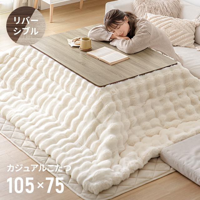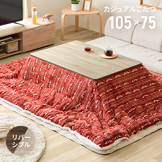 こたつ こたつテーブル 長方形 レギュラー 105cm×75cm リバーシブル おしゃれ ホワイト 北欧 ビンテージ風 アンティーク調 こたつテーブル コタツテーブル あったか 冬 【1年保証】