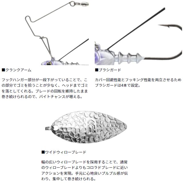 ●他のスピナーベイトと違い、ヘッドがロックされていないため、ユラユラと艶めかしくアクションするのも特徴。