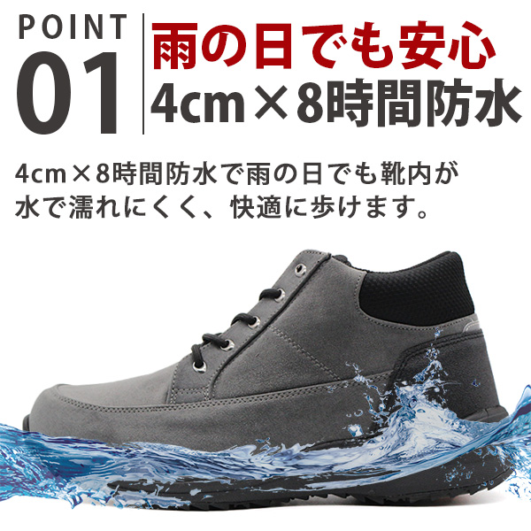 4?×8時間防水で雨の日でも靴内が水で濡れにくく、快適に歩けます。