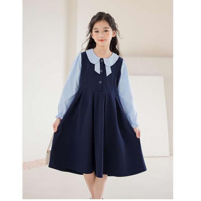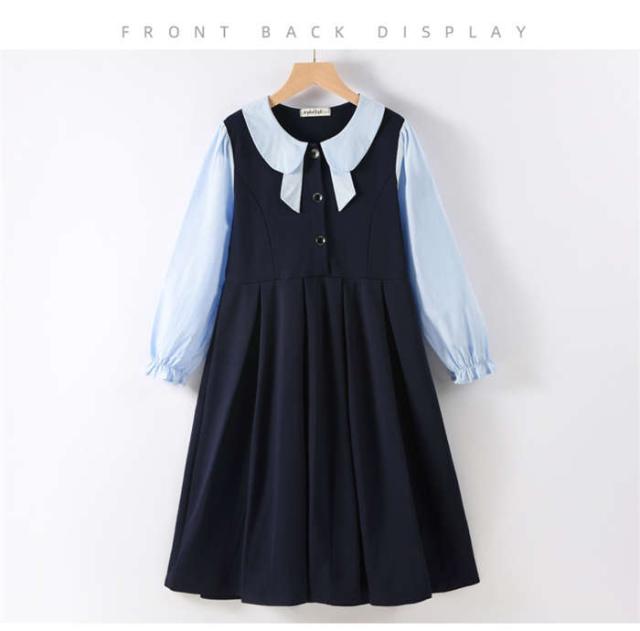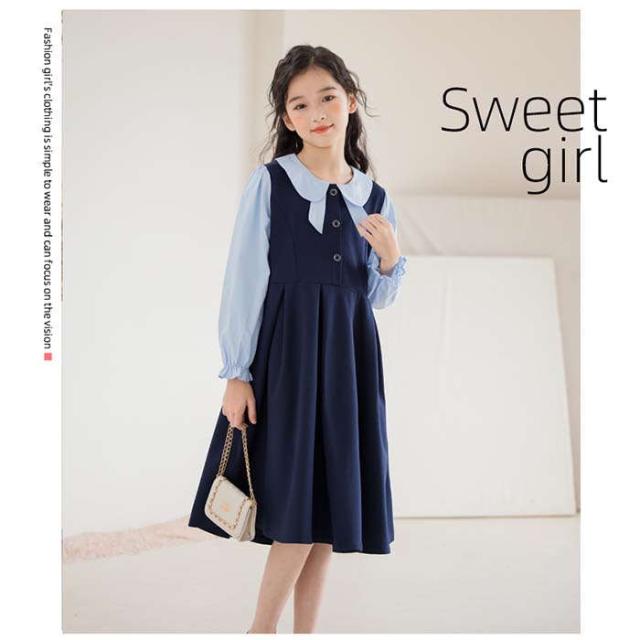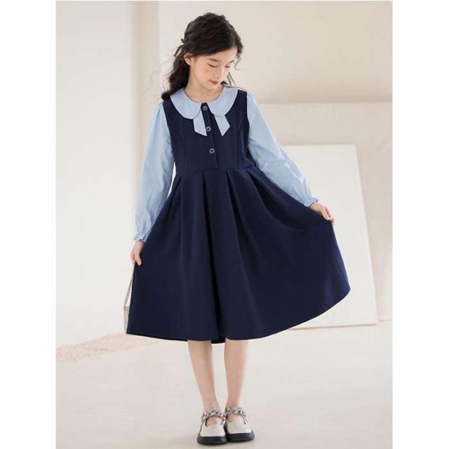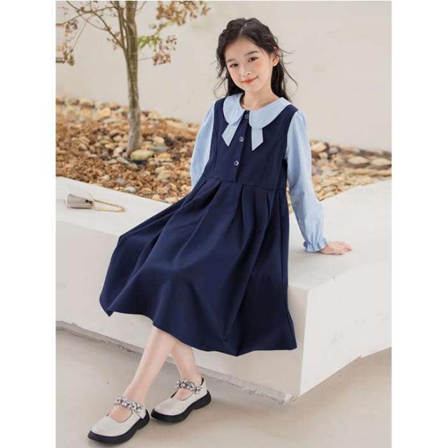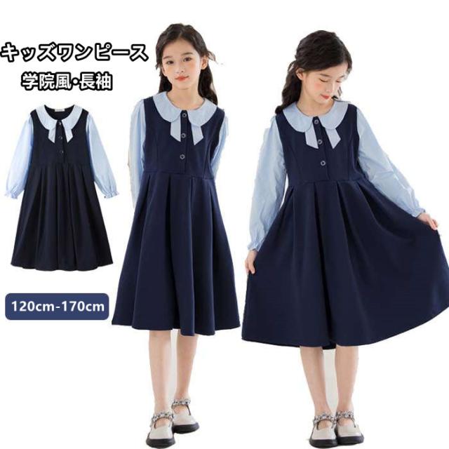 商品名:キッズ ワンピース レイヤード風ワンピース 女の子 子どもワンピース 学院風 ワンピース 子供ワンピース フォーマルワンピース ピアノ 発表会ワンピース 長袖 ドレス 子供服 結婚式 七五三 ワンピース ジュニア ガールズ 120 130 140 150 160 170 ギフト