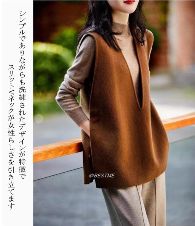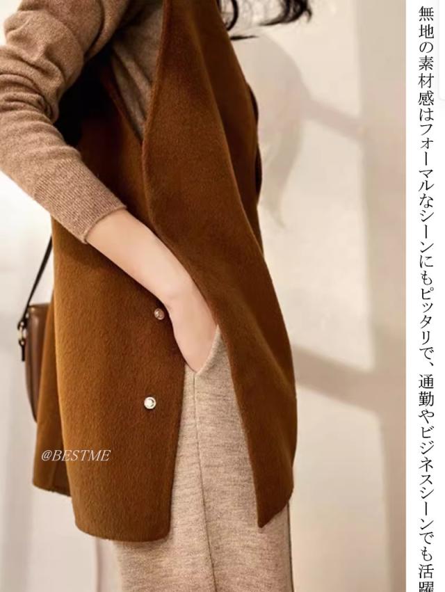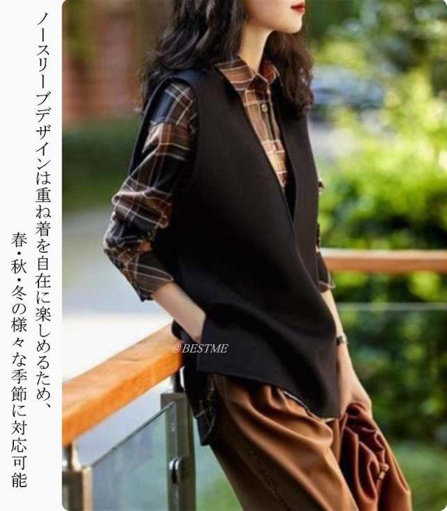 送料無料 ベスト ジレ レディース スリット Vネック 無地 おしゃれ 大きいサイズ ジレベスト ロングベスト ロング ジレ ファッション ノースリーブ 通勤 OL オフイス 春 秋 冬 上品 きれいめ フォーマル 入学式 ビジネス