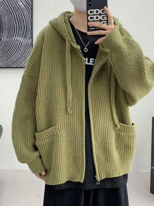 カーディガン 長袖 ニット 韓国風 コート 無地 メンズトップス 秋服 ゆったり 20代 30代 秋新作 メンズ服