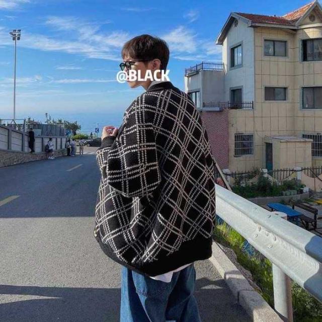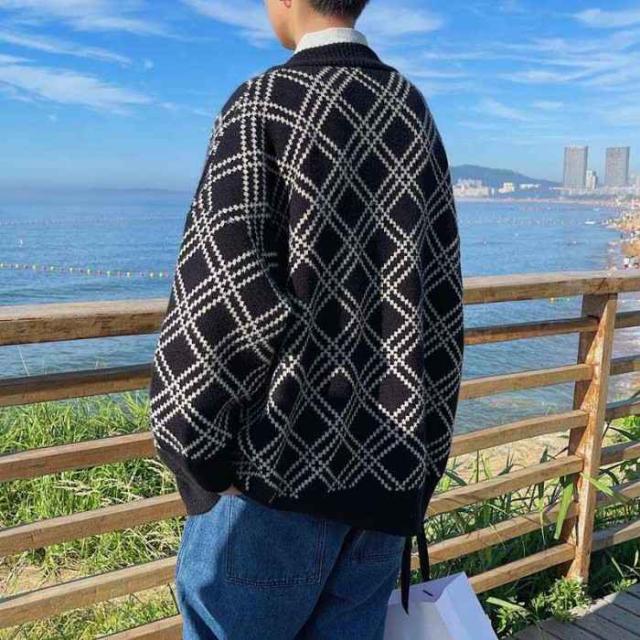 メンズ服 カーディガン 長袖 ニット 韓国風 コート チェック柄 メンズトップス 秋服 ゆったり 20代 30代 秋新作 メンズ服