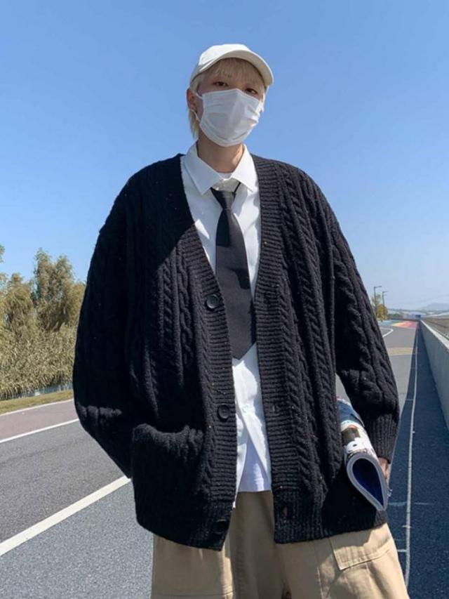 メンズ服 カーディガン 長袖 ニット 韓国風 コート 無地 メンズトップス 秋服 ゆったり 20代 30代 秋新作 メンズ服