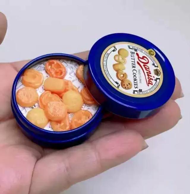 リアルなデザインの缶入りクッキーミニチュアセット。