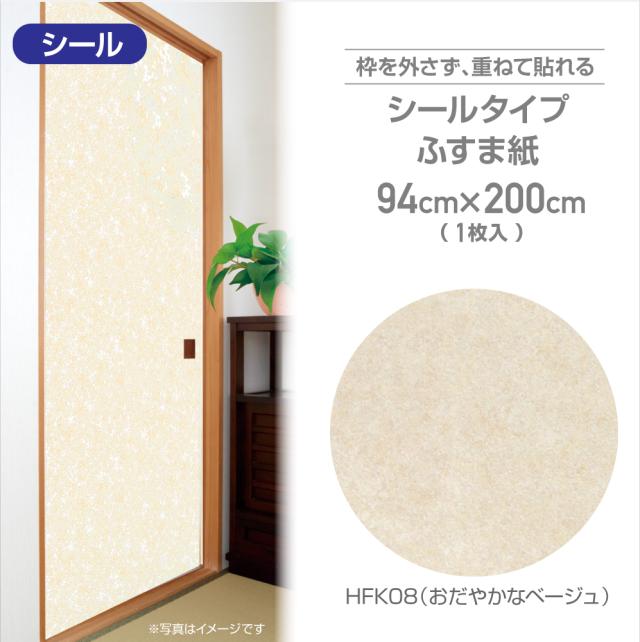 ふすま紙 HFK08 シールタイプの粘着ふすま紙 94cm×200cm×1枚 おだやかなベージュ 無地調