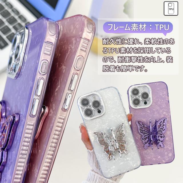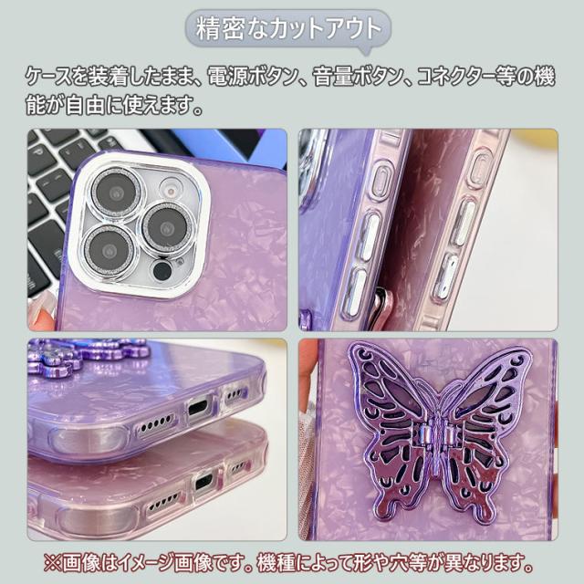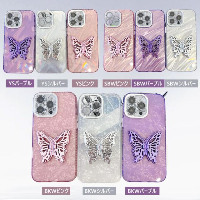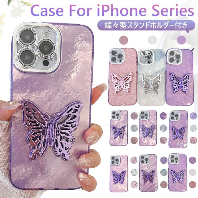 【貝殻風】 iPhone 16 Pro ケース 蝶々 スタンドホルダー付き キラキラ iPhone 15 ケース おしゃれ iPhone16 ケース カメラレンズ保護 iPhone15 Pro Max スマホケース iPhone14 アイフォン 16promax カバー 耐衝撃 かわいい 可愛い オシャレ IMD スマホカバー