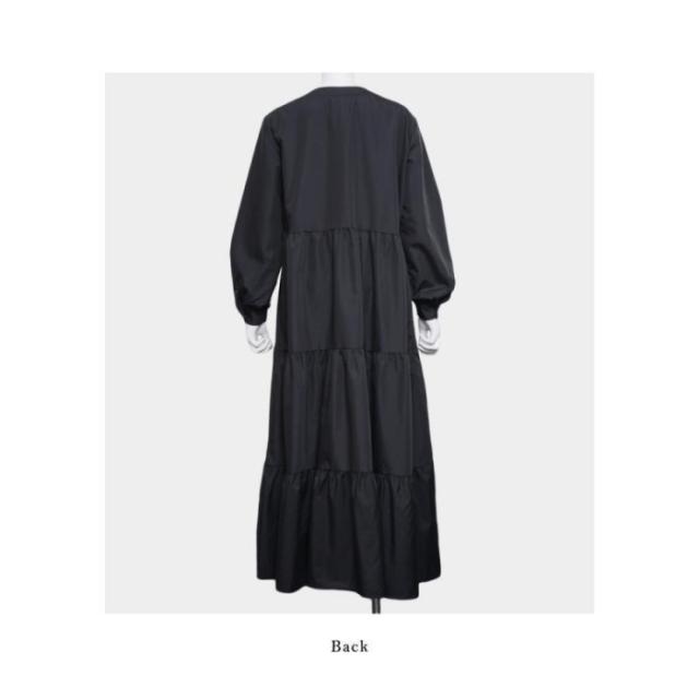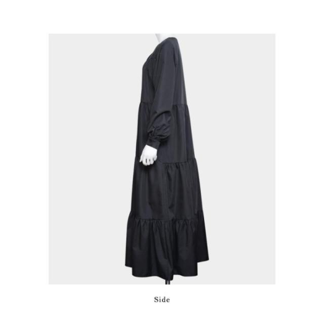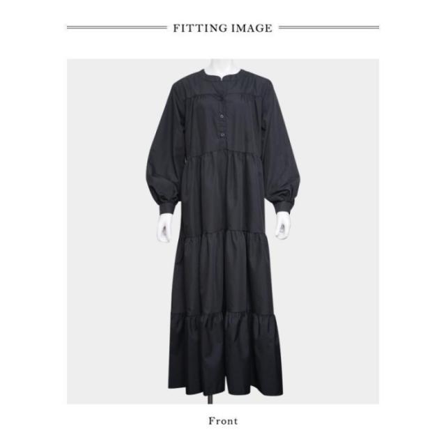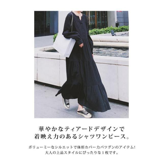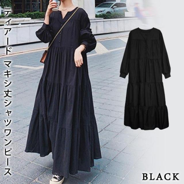 ワンピース レディース 秋 冬 秋冬 黒 シャツワンピース 長袖 マキシワンピース ロング ティアード フレア スキッパー シャツ 体型カバー ブラック