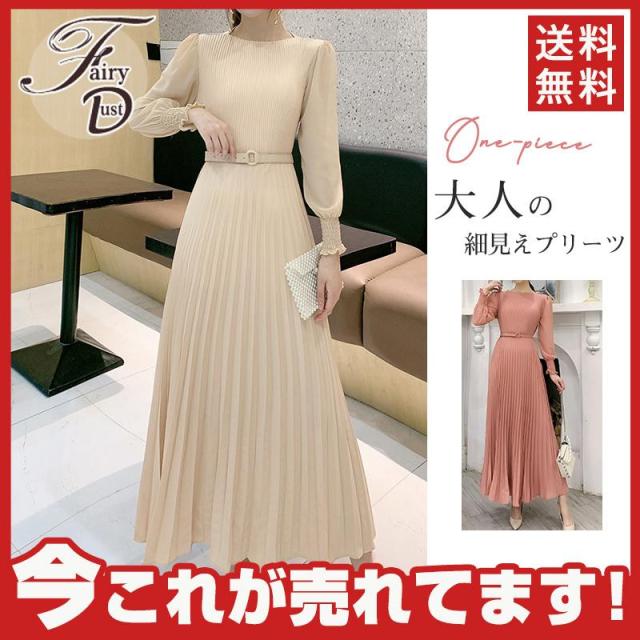 ワンピース レディース 春ワンピ プリーツワンピース ロングワンピース マキシ丈 不規則裾 おしゃれ ふんわり 二次会 通勤 着痩せ フェミニン 上品 お出かけ