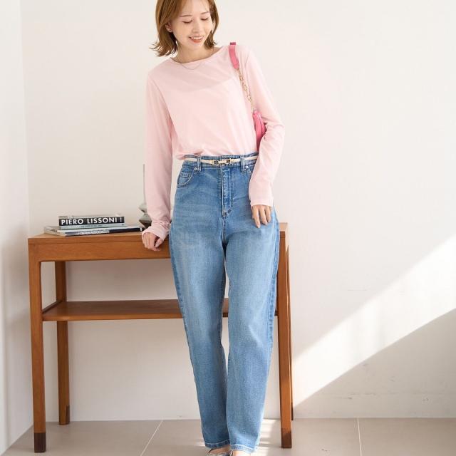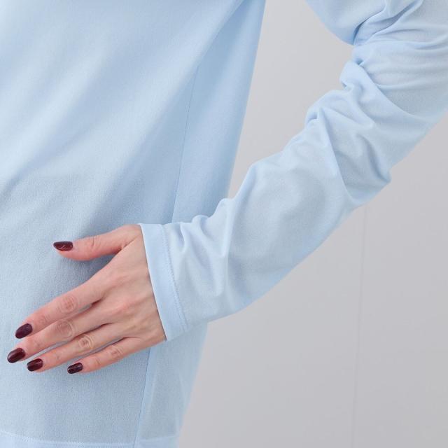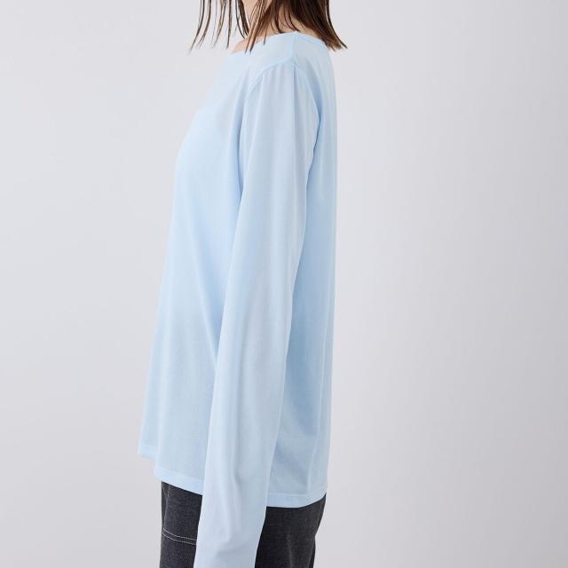 ・シンプルな、長袖クルーネックデザイン。
