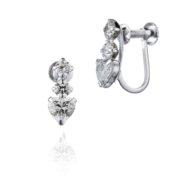 ハート型のキュービックジルコニアが華やかにきらめく、可愛らしい印象のイヤリング。