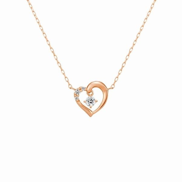 大粒のキュービックジルコニアが揺れる、愛らしいハートモチーフのネックレス。