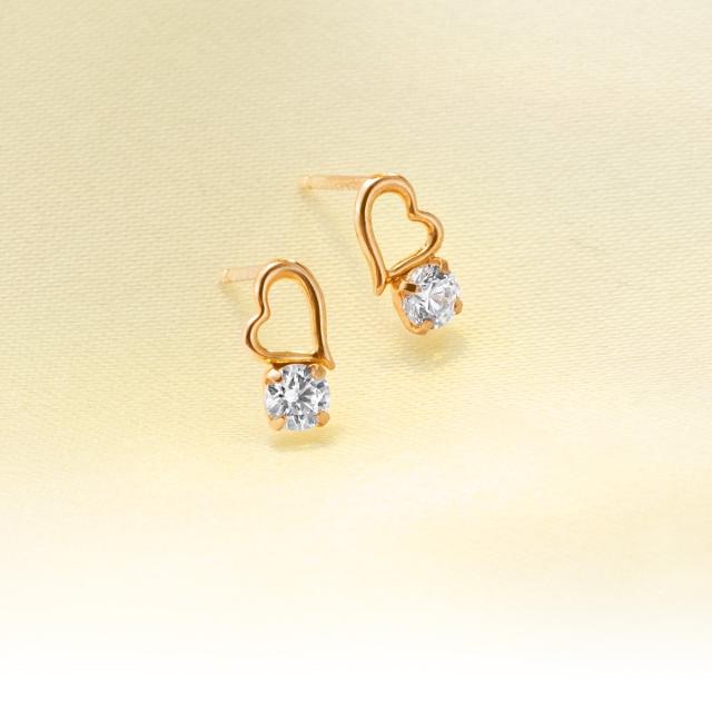 キュービックジルコニアに寄り添うハートモチーフが、天使の羽にも見える愛らしいピアス。