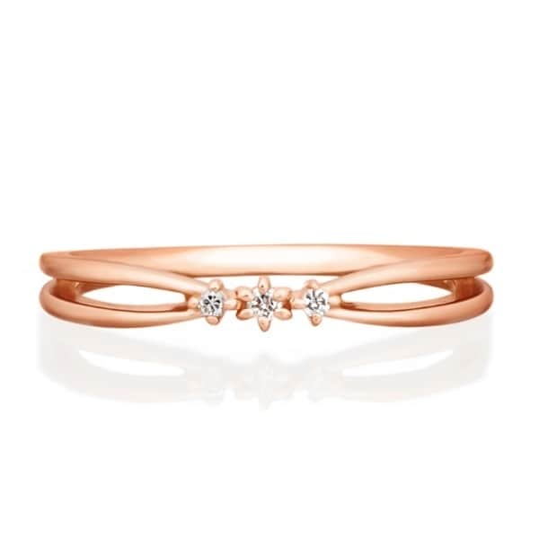 曲線ラインが美しくセンターに天然ダイヤモンドを3粒あしらったピンキーリング。