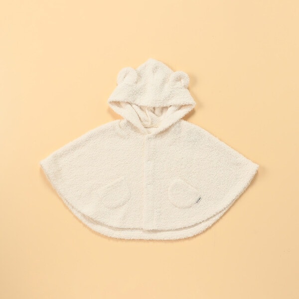 フードに耳が付いた着ぐるみタイプのベビーらしいデザインのマントです。