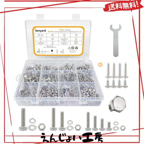 ◆商品名:Senyard 六角ボルト 錆びない ステンレス ボルト ナット セット, M6 M5 M4 六角ネジ セット 518pcs ボルトナットセット ステンレスボルト