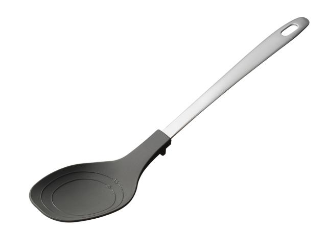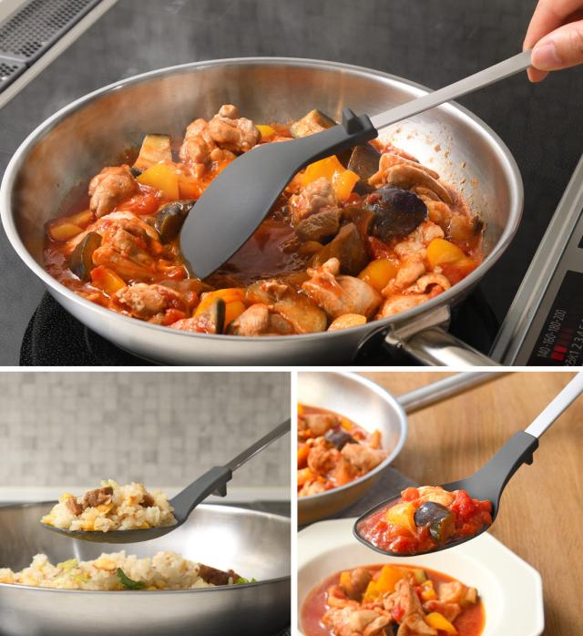 調理から計量、盛り付けまで、これ一本で何役もこなす調理スプーンです。スプーン形状なので、たっぷりすくえて、炒め物から盛り付けまで手早く仕上がります。調理中にツールを持ち替える必要もないので、洗い物も減って効率よく調理ができます。柄が長いので、熱気が届きにくいのもポイントです。