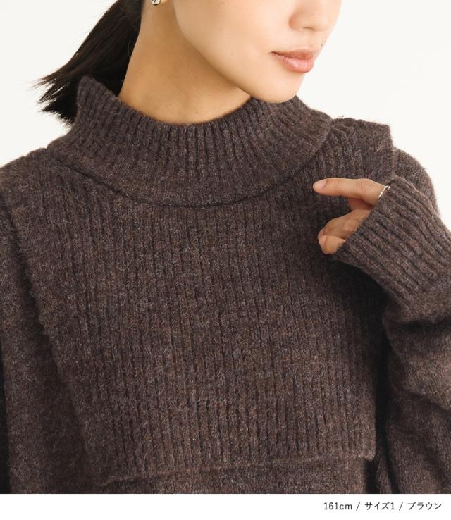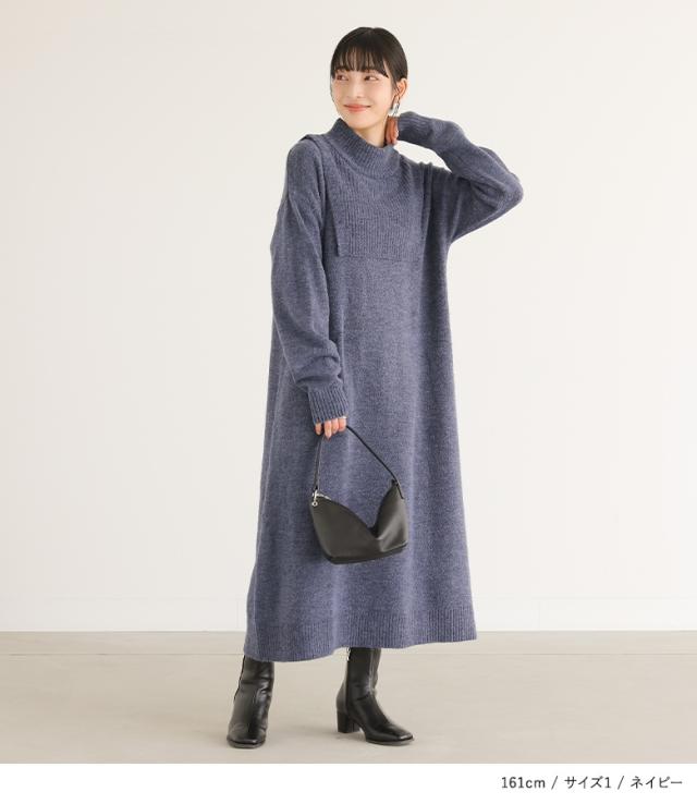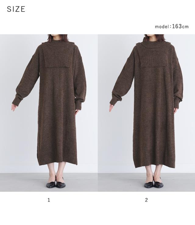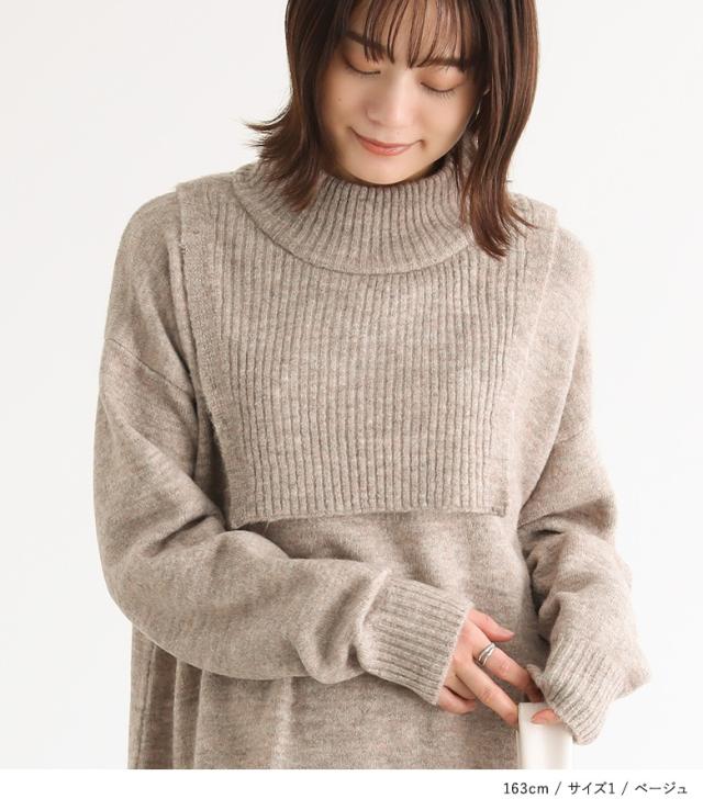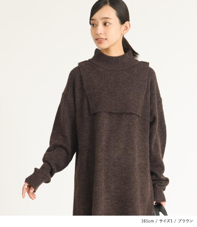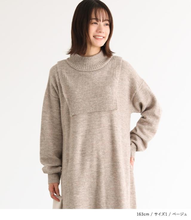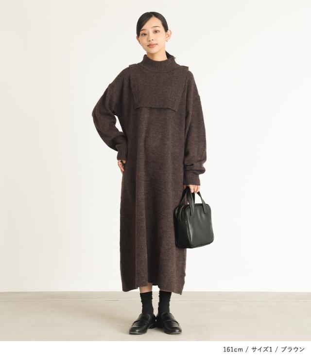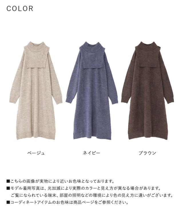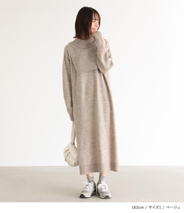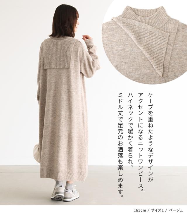 『レイヤード風ニットワンピース』【メール便不可】【30】[ニットワンピース 長袖 レディース ワンピース ロングワンピ ニットワンピ ミドル丈 ロング丈 ケープ ハイネック ドロップショルダー]