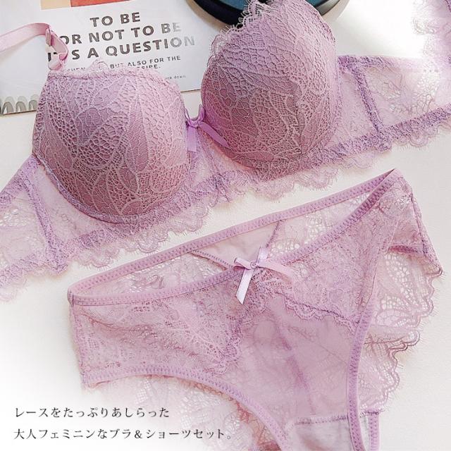 2wayバックストラップリーフレースブラ&ショーツセット