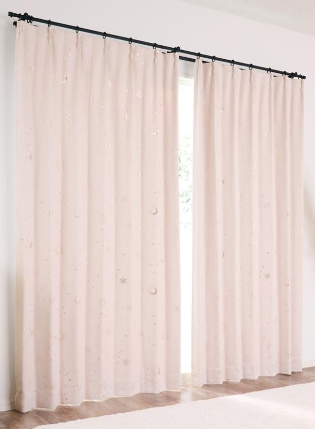 2級遮光カーテン 星柄 ピンク 100×178cm 2枚組 クレアール