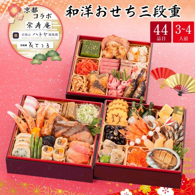 おせち 料理 予約 お節 2026 京都 瑞鳳閣 花ごころ 栄寿庵コラボ 和洋おせち 三段重 3〜4人前 44品 京洛饗宴-21 送料無料 【着不可地域:北海道・沖縄・離島】【12月31日着】【時間指定不可】